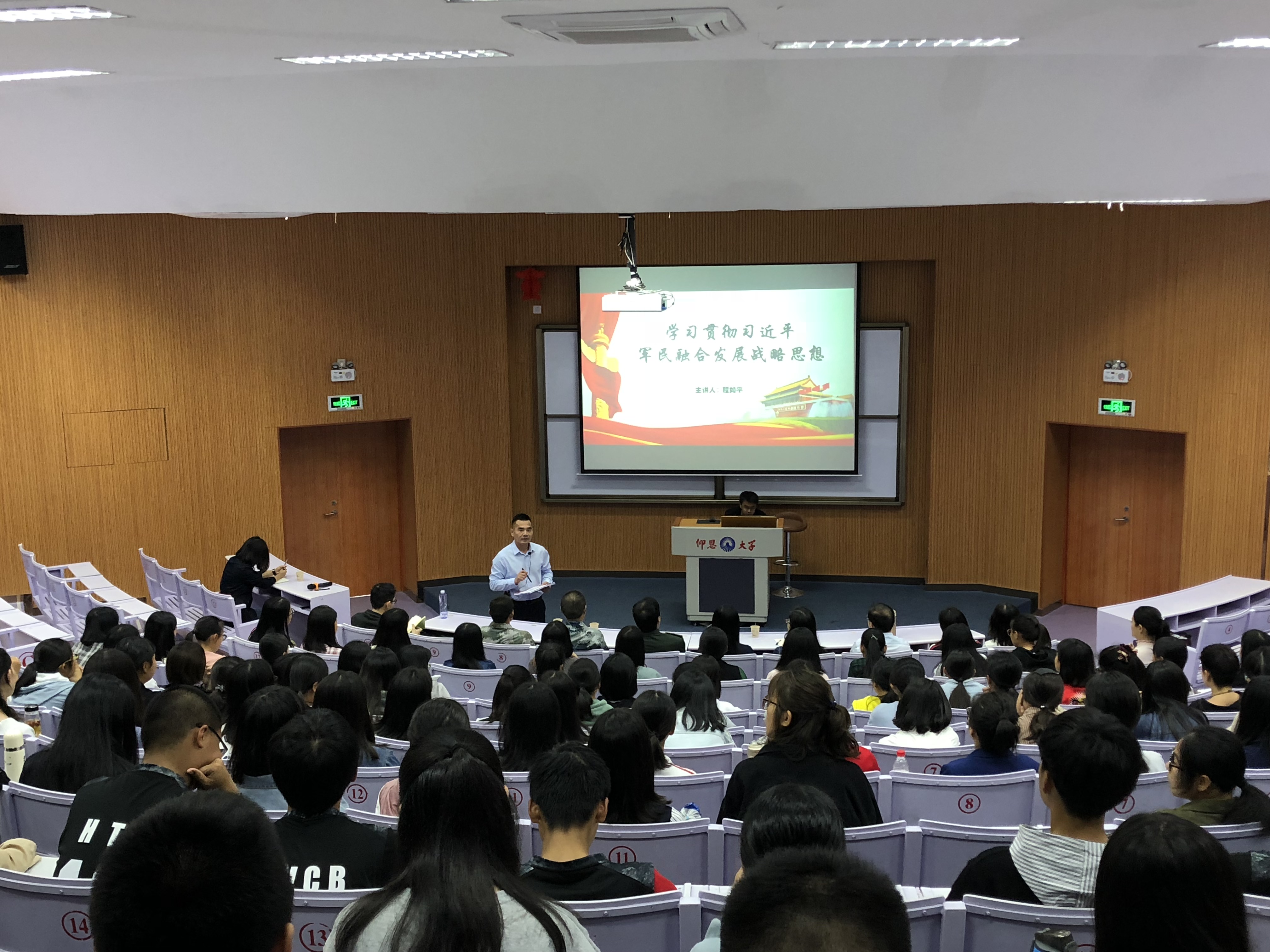 2018年9月20日我校学习贯彻习近平新时代中国特色社会主义思想大宣讲工作正式启动。开云kaiyun官方网站积极响应学校学习要求,特邀校党委理论宣讲团成员程如平副书记讲授《学习贯彻习近平军民融合发展战略思想》。2018年10月17日下午2点30分,校党委理论宣讲团成员程如平副书记如约而至博雅讲堂进行新思想宣讲,此次宣讲还邀请武装部薛军楼副部长、徐炳杰教授和曾文档老师参加。开云kaiyun官方网站党总支书记兼副院长胡娟老师主持活动,开云kaiyun官方网站党总支副书记兼院长蔡巧娜老师、开云kaiyun官方网站党总支副书记刘冬利老师及全院师生一起参加此次宣讲学习。