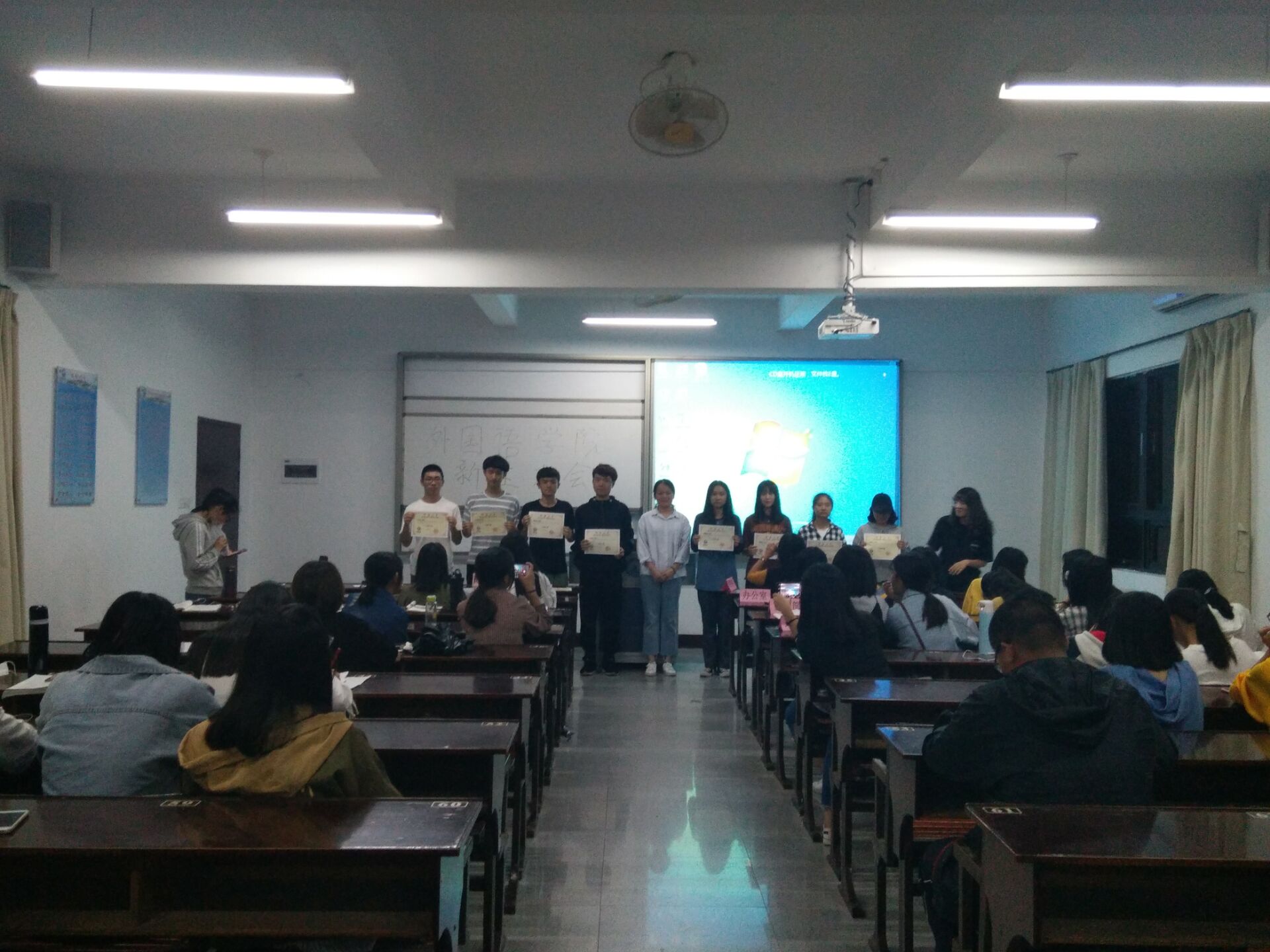 开云kaiyun官方网站于11月11日19:00在仰恩楼D3-405 召开新生大会暨表彰大会!开云kaiyun官方网站党总支副书记兼学生会指导老师刘冬利,学生会主席陈倩、副主席黄雅萍以及全体干部和干事和18级新生参加了会议。