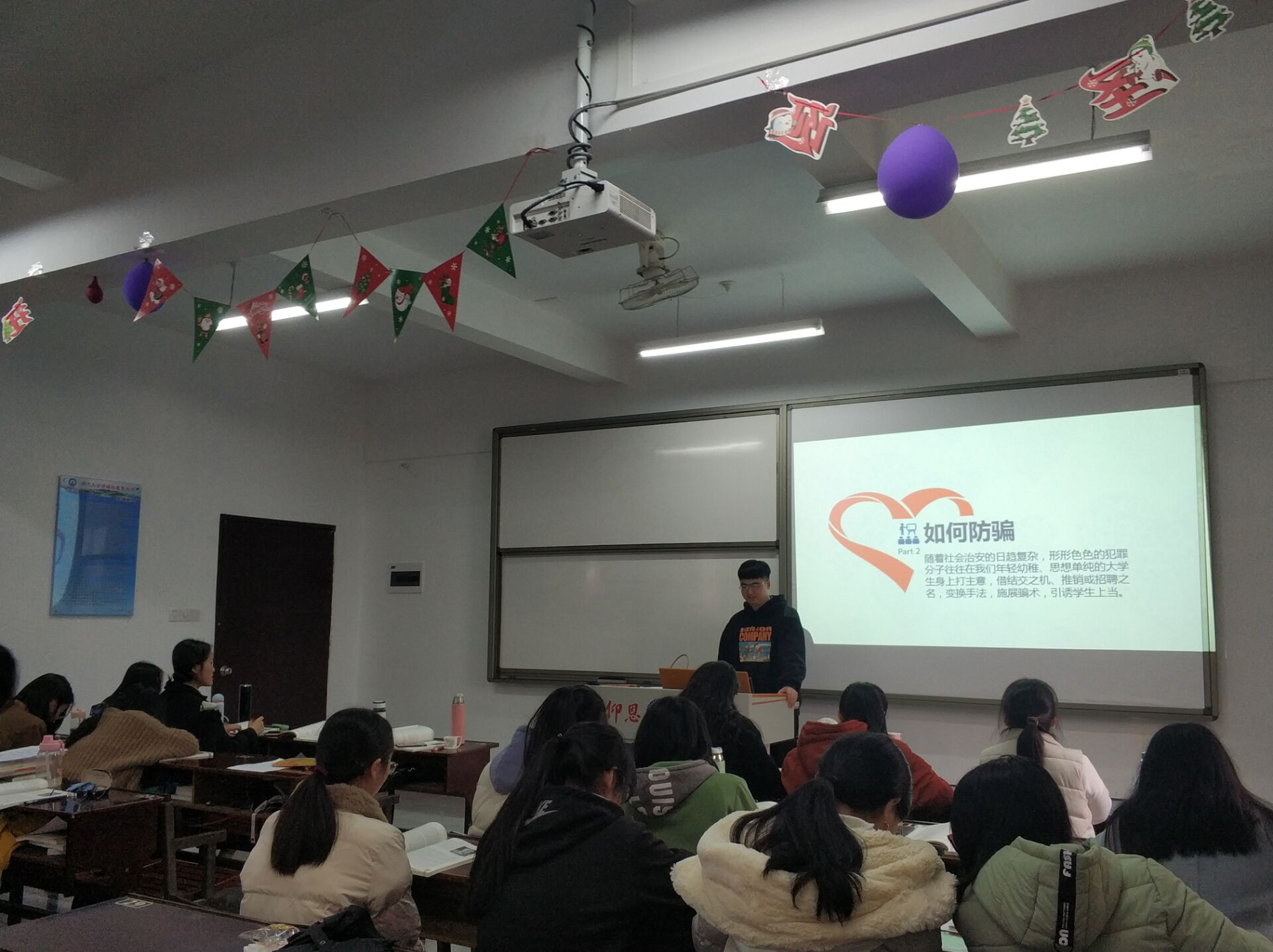 安全教育主题班会 班会首先结合近期发生的校园安全案例展开讲话,又结合所见所闻对我校曾发生的真实安全事故作出分析,所列问题涉及同学人身安全和财产安全,重点强调了外出交通安全,宿舍电器使用安全等人身安全,手机现金以及银行卡等财产安全。班会最后,各班团支书对宿舍安全,校园安全,校外安全应注意的问题做出了说明以及必要的提醒,让同学们在平时意想不到之处有了进一步的认识。