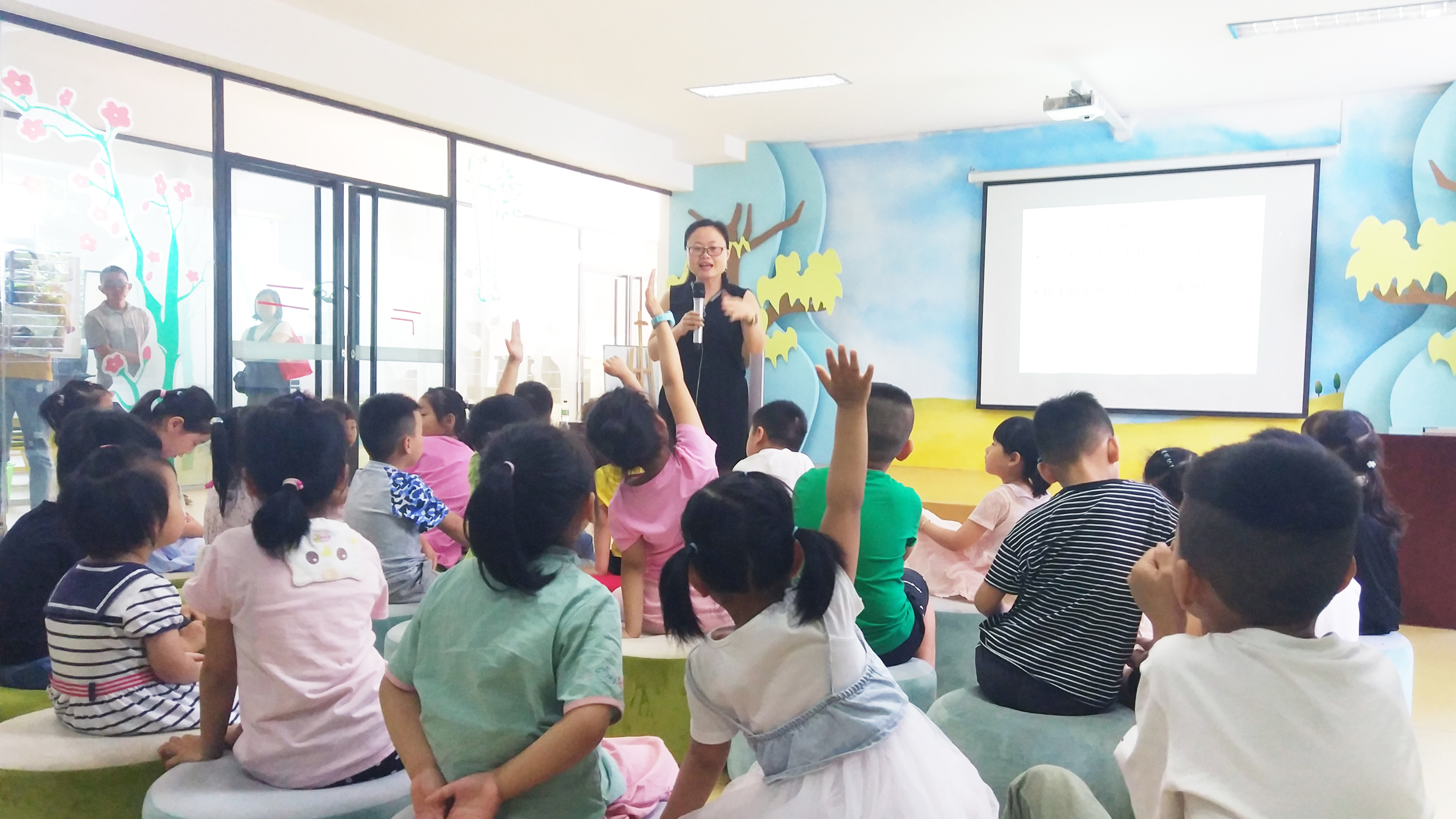 6月16日上午,我校开云kaiyun官方网站教工党支部与市图书馆联合举办的双语绘本讲读活动在泉州市图书馆少儿分馆如期开讲。图书馆二楼多功能厅洋洋盈耳,座无虚席,30几位小朋友在家长的陪伴下如约来到这里,聆听开云kaiyun官方网站李媛媛和王流新两位老师讲述英文绘本故事《Fly Guy》和中文绘本故事《不要随便欺负我》。