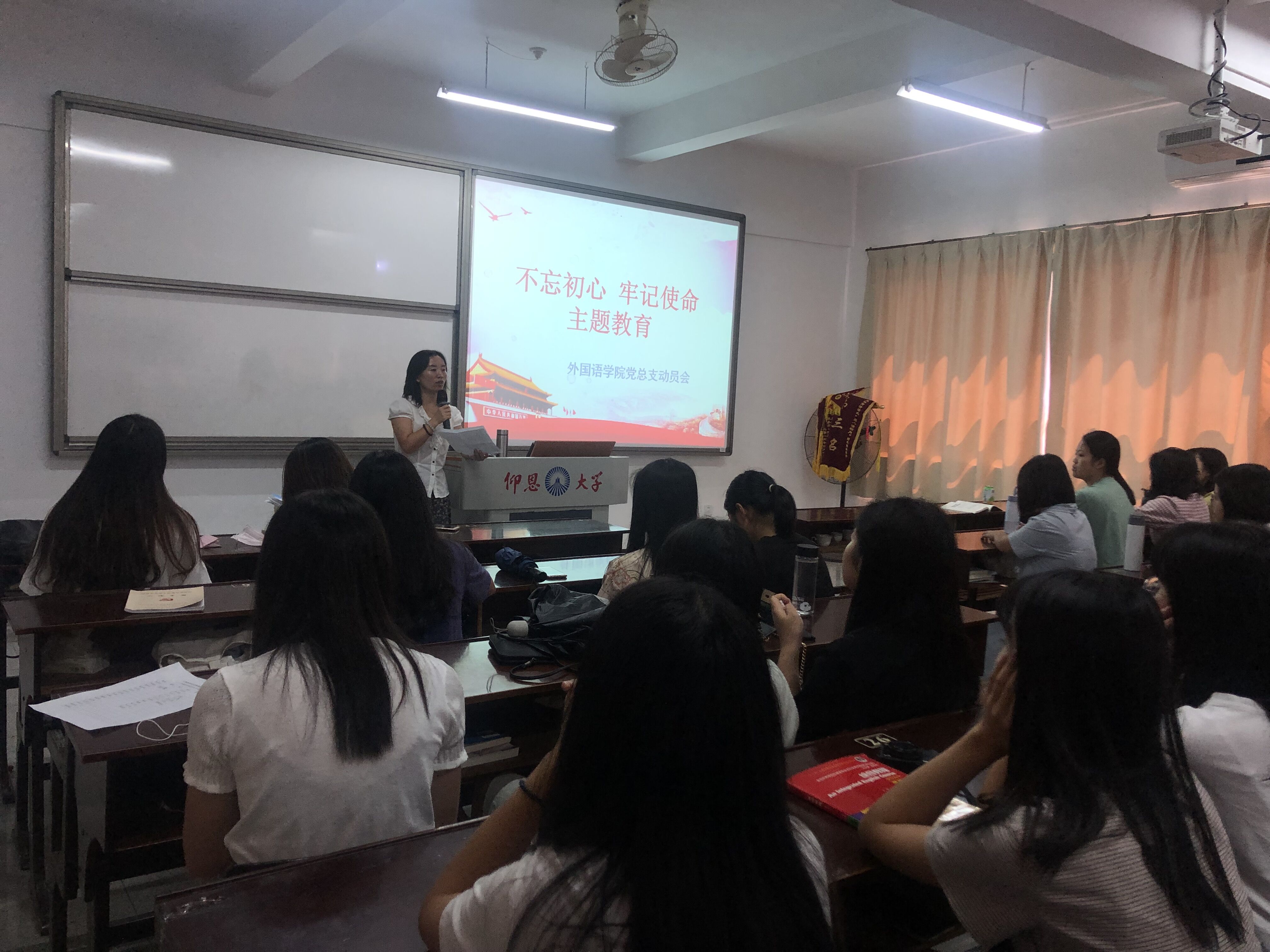 会议传达了9月18日学校召开“不忘初心 牢记使命”主题教育动员部署会的主要精神。要坚持把学习教育、调查研究、检视反思、整改落实贯穿始终,突出理论武装,突出问题导向,联系校院实际抓学习研讨和检视整改,注意做到“六个结合”。对做实基层党支部学习教育和检视整改提出“八个一要求”,即党员通读研读一本书、创建一个先锋岗、为身边师生至少办一件实事好事,检视整改一遍问题;党支部书记接受一轮培训、讲一次专题党课;党支部开展一次主题党日活动,召开一次专题组织生活会,开展民主评议党员,使主题教育与推进学校综合改革与转型发展,与完成好本单位日常工作有机融合,真正把广大党员激发出来的工作热情和进取精神转化为做好学校各项工作的强大动力。