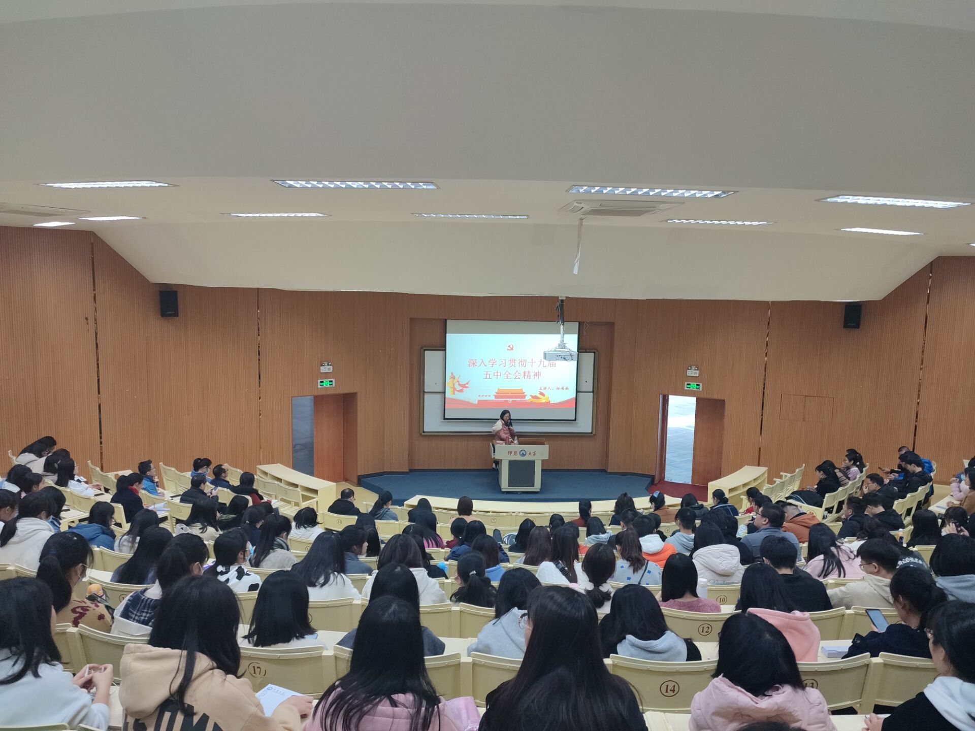 活动现场 通过此次宣讲会,我院师生对全会精神有了深刻思想认识。学习贯彻党的十九届五中全会精神是当前的一项重要政治任务,我们要以习近平新时代中国特色社会主义思想为指导,全面准确把握和深入宣讲全会精神,为党和国家培养的高层次人才,作为新时代的大学生必须坚定理想信念、不负时代期望,牢固树立社会主义核心价值观,胸怀家国,勇于担当,竭力提升自己、做好职业规划,将自己人生未来的发展与祖国建设发展的需要紧密联系在一起,做德智体美劳全面发展的社会主义建设者和接班人。(宣传部/图 郑颖/文)