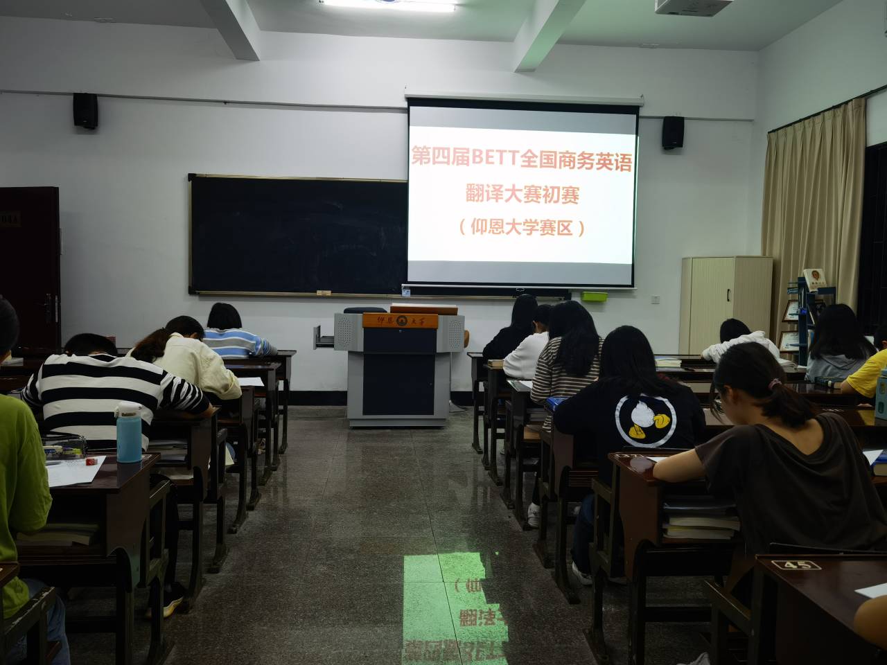 2021年11月7日晚18:30-20:30,在普照教学楼104A室,来自开云kaiyun官方网站26位学生参加了第四届BETT全国商务英语翻译大赛初赛。参赛学生来源为商务英语专业和英语专业各年级的学生。