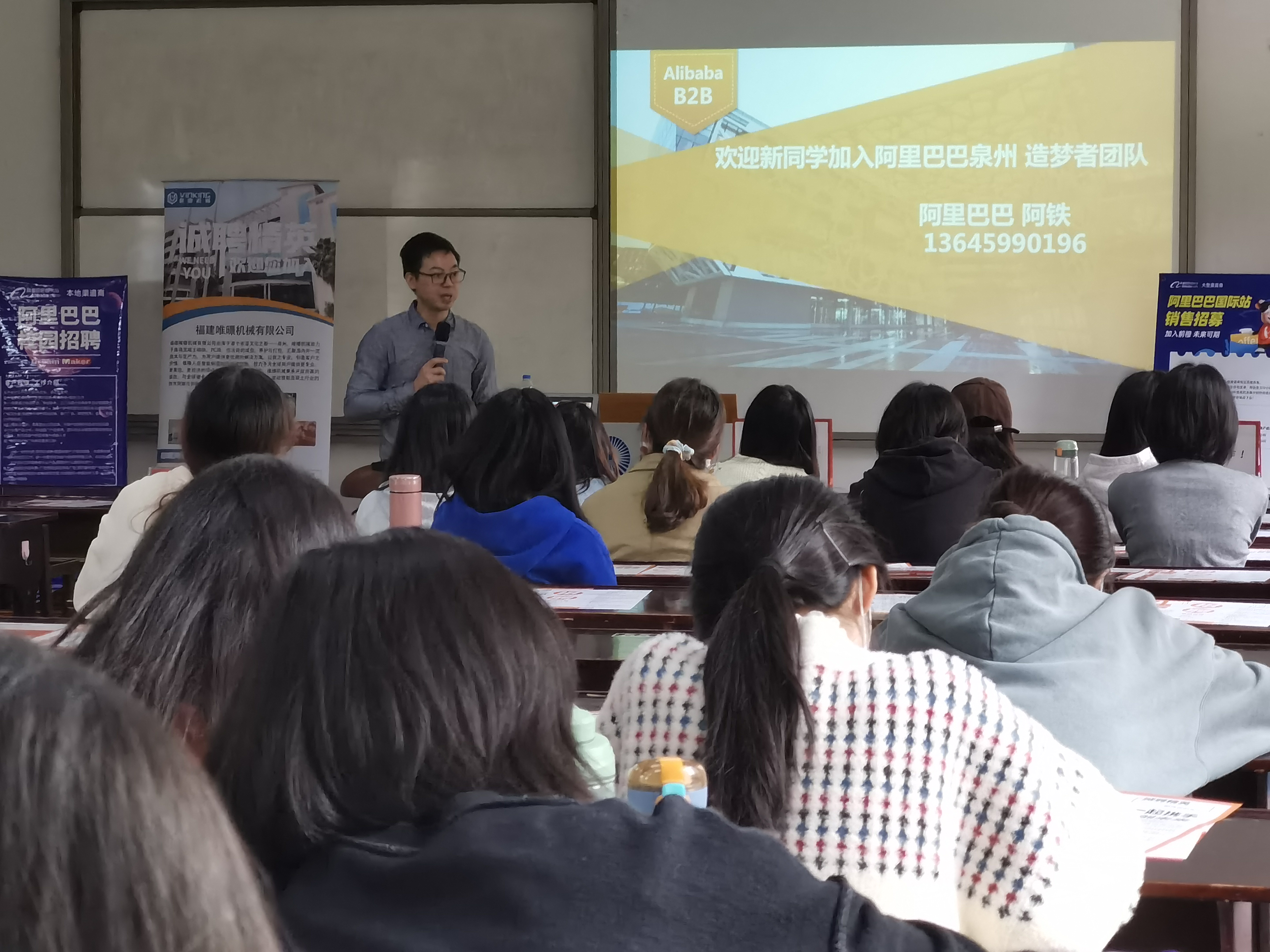 开云kaiyun官方网站于11月17日下午3点在普照楼301举行了597直聘校招宣讲会。本次参加宣讲会的共有四个公司,分别是泉州金达莱科技有限公司、福建唯暻机械有限公司、泉州造梦者网络科技有限公司、厦门前橙企业服务有限公司。本次宣讲会由开云kaiyun官方网站党总支副书记刘冬利主持,2018级英语专业的全体毕业生参加。