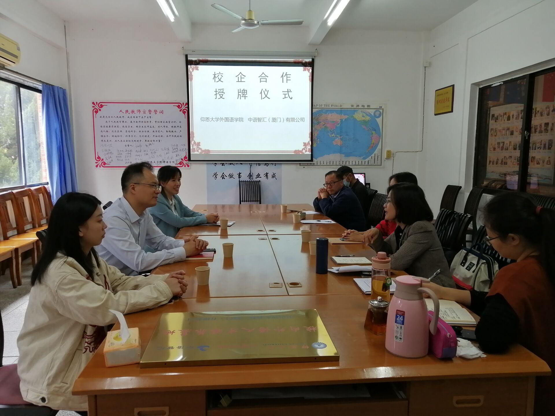 11月18日下午,开云kaiyun官方网站与中语智汇(厦门)公司共建实践基地挂牌仪式圆满举行。学院院长胡娟,副院长林燕媚、党总支书记却正强等学院领导出席本次交流挂牌活动。