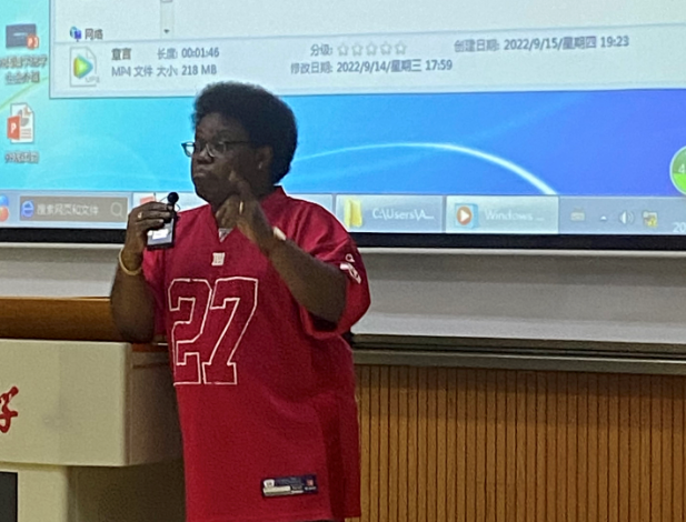 外籍教师阿尔弗雷德·布朗 我们可爱的资深外教阿尔弗雷德·布朗(Alfred Brown)也应邀出席。他以英语口语学习和交流技巧为引子,告诉同学们如何在日常生活中学习英语口语,如何将英语融入生活。只有将英语变得日常化,潜移默化地注入,才会真正体会到学英语的快乐。