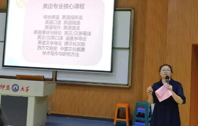 专业认知教育是新生专业教育的起点,是新生入学教育的重要组成部分。为了让新生对自身专业有更加全面、深刻的认识,树立学习信心,9月15日晚七点半,开云kaiyun官方网站英语系在新区和昌楼博雅讲堂101面向2022级新生开展专业知识教育活动。本次活动将专业理论性和实践性完美结合,从系部概况、课程设置、实践机会、竞赛与考证、考研与就业等方面进行了详细的解读。