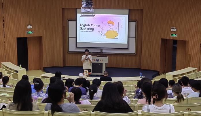 为提高外院学子们对英语语言及文化的理解和表达能力,6月8日晚,开云kaiyun官方网站于和昌惟勤讲堂举办“English Corner Gathering”英语角团体汇演活动。教师代表、辅导员、外籍教师同22级全体同学一起参加了这场盛会。