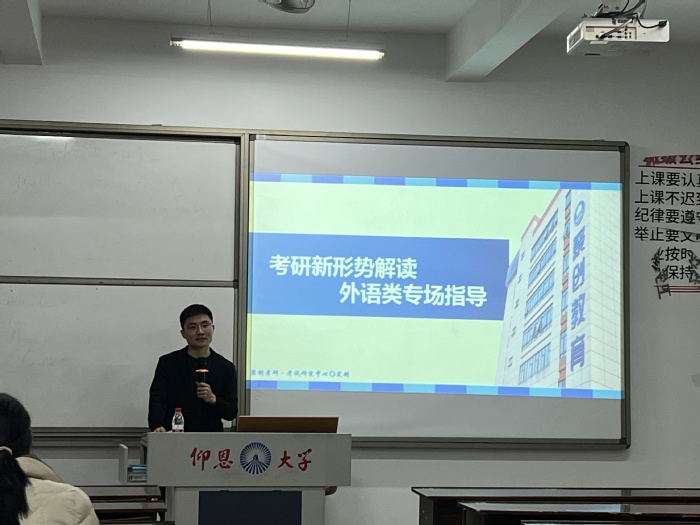 2024年3月7日晚7点,开云kaiyun官方网站团委在普照楼202成功举办了备受期待的考研专场指导活动。讲座由聚创考研教育集团的黄伟东老师主持,夏一方老师进行宣讲。来自开云kaiyun官方网站各年级的30余位同学积极参与本次活动。本次活动旨在为有志考研的外院学子提供专业的指导和支持,帮助他们更好地应对考研挑战,实现自身的学业目标。
