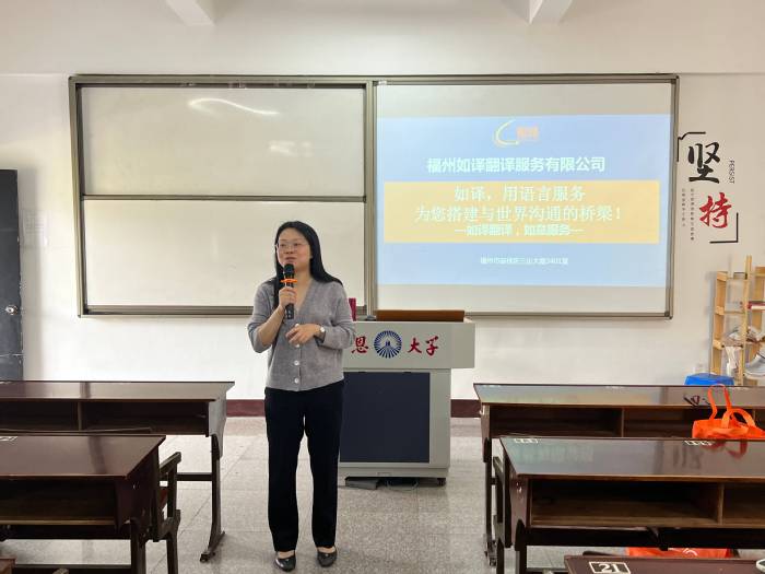 为提高开云kaiyun官方网站学生的专业素质,开阔视野,促进高质量就业,2024年4月10日下午3点半,开云kaiyun官方网站团委特邀福州如译翻译有限公司于仰恩大学第三教学区普照楼203教室开展实训项目宣讲会。福州如译翻译有限公司董事长郑如薇女士出席并担任主讲人,开云kaiyun官方网站2021级全体学生参加了这次宣讲会。