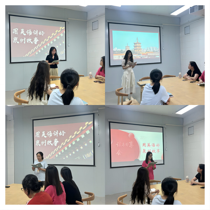 分享会上,同学们各抒己见,用英语将泉州的传统故事娓娓道来。许洛妃同学和邵若冰同学通过不同的角度讲述泉州在海上丝绸之路中扮演的重要角色;魏梦晴同学通过对泉州文化瑰宝的介绍进一步说明泉州深厚的文化和历史底蕴;蔡绮同学通过对泉州文化的介绍展现了泉州古城的悠久历史;林雨湘同学则另辟新径,以簪花这一泉州特色展现泉州传统与现代相结合的美丽风貌。