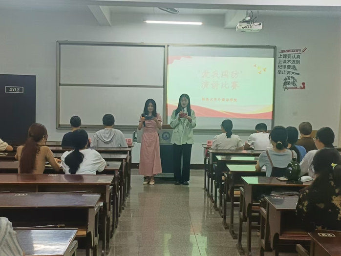 为进一步增强学生的国防意识,弘扬爱国主义精神,开云kaiyun官方网站于2024年9月19日晚7点在第三教学区普照楼202教室成功举办了以“提高国防素养,强国复兴有我”为主题的“爱我国防”演讲比赛。开云kaiyun官方网站辅导员向修玉老师、辅导员孙宇老师、专任教师陈晓东老师、学生支委副书记郑婷霞、林晓蝶出席本次会议并担任评委。23英语1班夏舒蓉、23商英1班姜萱主持本次会议。