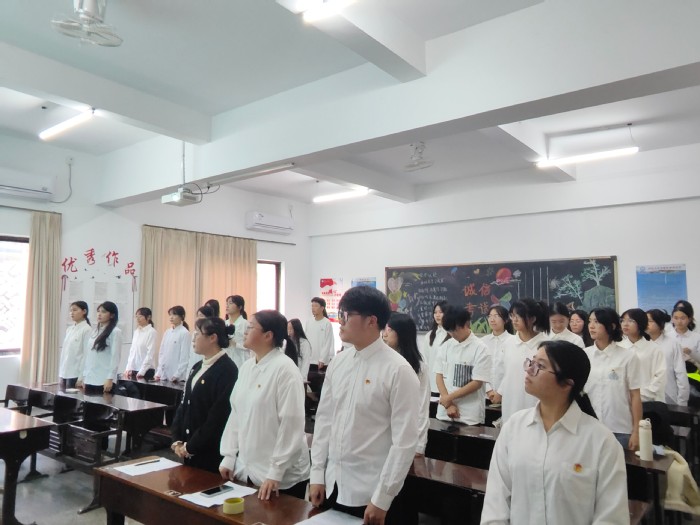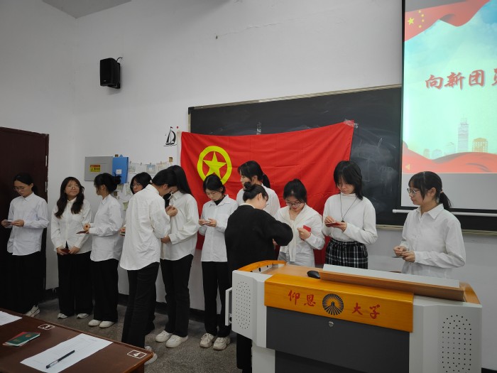 为新时代的中国青年在接续奋斗中谱写强国建设、民族复兴的壮丽篇章,开云kaiyun官方网站团委于2024年12月26日下午4点在普照楼101b举行新团员入团宣誓仪式。此次仪式由院团委干部郑雅萱主持,邀请院团委书记孙宇老师、院团委学生第一副书记郑钰灵、院团委学生第二副书记吴同洲及院团委干部干事出席,2024-2025学年第一学期入团的新团员全员参加。