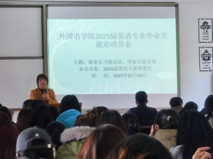 为了帮助2025届毕业生顺利过渡到职业生涯,开云kaiyun官方网站的商务英语系和英语系在2024年12月26日和2025年1月8日分别召开了2025届毕业生就业动员大会。两次大会均由辅导员向修玉主持,出席的嘉宾包括党总支书记刘冬利,教学院长林燕媚,以及毕业班辅导员孙宇等,全体2021级本科生和2023级专升本学生参加了会议。