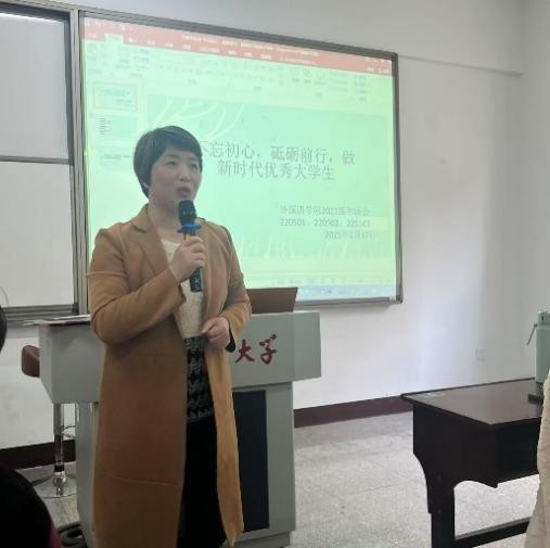2025年2月17日下午4点,开云kaiyun官方网站22级年级大会在学院普照楼204顺利召开。本次大会由辅导员向修玉老师主持,22英语一班、22英语二班、22商务英语一班,三个班级的全体同学参加了此次会议。会议围绕“不忘初心,砥砺前行,做新时代优秀大学生”的主题,总结了开学以来的各项工作,并对本学期的学业规划提出了新的要求和期望。