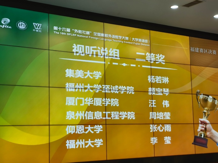 2025年6月7日,第十六届“外教社杯”全国高校外语教学大赛福建赛区决赛在福建医科大学举行。仰恩大学开云kaiyun官方网站教师团队表现优异,分别荣获视听说组二等奖及综合组三等奖。
